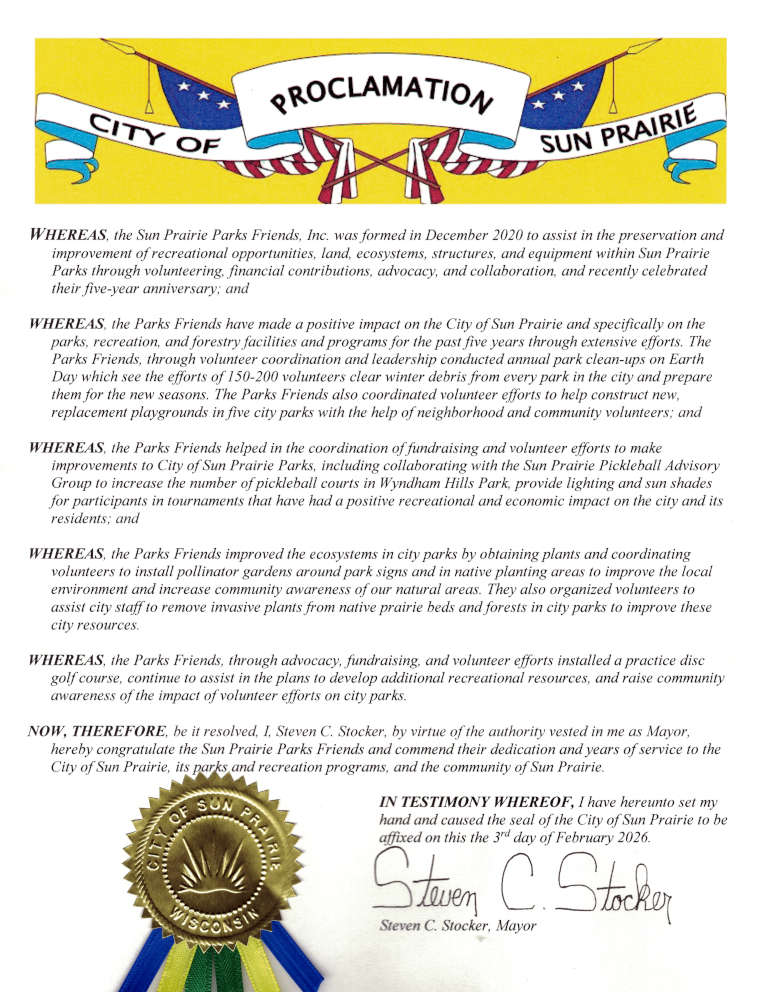 The Sun Prairie Parks Friends, Inc. Board of Directors meet once a month and welcome member and community input at all meetings. Meetings are typically on the fourth Tuesday of the month at 5:30pm.